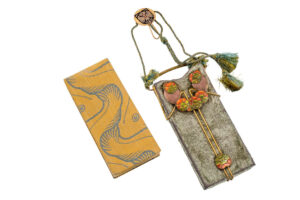 A Ballspende (also known as Damenspende) was an elegantly crafted souvenir or keepsake handed out at balls, typically to female guests. The most practical use of a Ballspende was as a dance card. Inside it, there was space to write the names of dance partners for specific dances throughout the evening, often pre-arranged. This allowed for the highly choreographed and socially delicate process of selecting and managing dance partners. Koloman Moser’s design for the Ballspende for the 1901 Ball der Stadt incorporates velvet, metal work, paper marbling, and his “Forellenreigen” (trout‑dance) floral motif, woven by fabric-house Johan Backhausen & Sons.