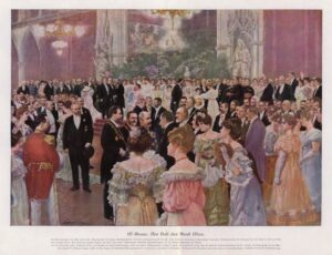 By 1748, masked carnival season redoutes were held annually, accommodating up to 3,000 Viennese. By the Congress of Vienna (1814–15), the Hofburg’s Redouten-Saal was the epicentre of Europe’s aristocratic revival—inspiring the famous pun, “Le Congrès danse beaucoup, mais il ne marche pas” (“The Congress dances a lot, but it does not walk”) Engravings by Wilhelm Gause and Vinzenz Katzler immortalize the grandeur of these events. Monarchs, courtiers, and dignitaries gathered in formal wear, dancing quadrilles and waltzes led by composers such as Johann Strauss I and Joseph Lanner. The grandeur of these gatherings had a social purpose: consolidating the dynasty’s authority, forging alliances, and reinforcing hierarchy, even as anonymous masks offered a brief escape from rigid protocol.