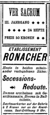 - Advertisement for the Secessions_Redoute. Ver Sacrum Advertisement above. Feb 20, 1900